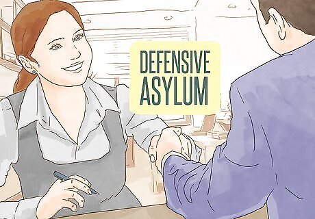 Understand asylum. Asylum is a benefit offered to refugees who are fleeing persecution in their home countries. If you win asylum, you can stay in the United States and eventually apply to become a permanent legal resident by getting a "green card," known more formally as a United States Permanent Resident card. Asylum applications can be “defensive” or “affirmative.” A defensive asylum application is one made when you are in removal proceedings in the U.S., either because you are attempting to enter the country without proper papers or because you broke an immigration law when inside the country and are about to be deported. Affirmative asylum applications are ones you file when not in removal proceedings.
