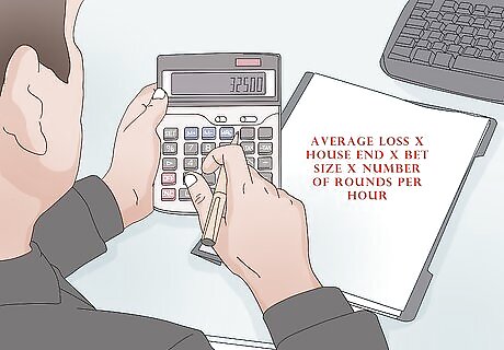 Understand your average loss. As well as understanding possibilities in a game of poker, it's good to keep in mind what your average loss during a session of video poker will be, so you go in with realistic expectations. To determine your average loss multiply the house end(the return the casino makes) by the bet size by the number of rounds per hour. In a 9/6 Jacks or Better game you would multiply .5% by $1.25 (this is a five coin, max bet game) by 400 (hands per hour). This would bring you to $2.50 an hour on a long term game. If you are playing a short term game, you are more likely to lose $6.50 an hour, because the house end for the casino will be higher (you'll have less chance of hitting the royal). An average slot machine brings you to a loss of about $40 an hour, so playing video poker is a much better way to earn money with limited loss.