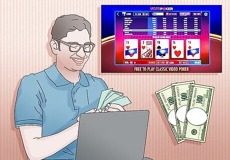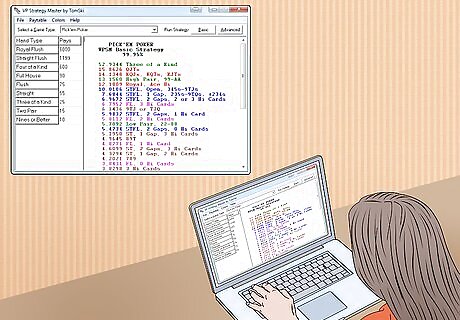 Practice with fake money first. Before you begin playing video poker with your own money, try practicing it on your computer with fake money so you can become familiar with the format of the game and better your chances of doing well at an actual casino. There are several websites you can visit to play video poker online to practice. Practicing online with fake money is the best way to familiarize yourself with the strategy for a specific game and give you practice in using the strategy sheet. It could be helpful to watch a few tutorials on video poker so you have a better grasp of how the game works. There are also software programs available online that warn you when you're making a strategic error.