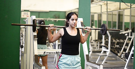 Perform deficit deadlifts. This lift is performed from a "deficit" position because you begin by standing on a one- to five-inch platform. Perform three sets of ten to twelve repetitions. Stand on the platform with your feet hip-width apart. Bend at the hip to grab the bar of your weight at shoulder width, letting your shoulder blades contract. Lower your hips and bend your knees until your shins touch the bar. Look up, keeping your chest and back arched, and begin driving through your heels to move the weight you're lifting upward. After the bar passes your knees, aggressively pull it back, bringing your shoulder blades together as you thrust your hips forward into the bar. Lower the bar by bending your hips and guiding it toward the floor.