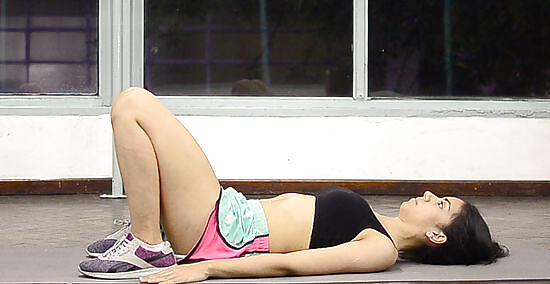 Create a bridge. This exercise can also be performed daily. Plan to begin with five repetitions and eventually build up to 30. Lay on the floor with your knees bent and arms placed parallel to your body on either side. Contract your abdominal and gluteal muscles. Exhale and slowly raise your hips toward the ceiling until there is a straight line from your knees to your shoulders. Hold this position for three breaths, or approximately six seconds. Inhale and slowly lower your hips to the floor.