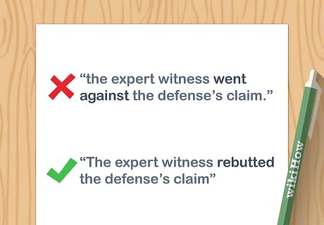 Make sure you've chosen strong, clear words. Ask yourself if you've overused any words, and make tweaks if you need more variety. Additionally, look for any occasions where you should replace a word with a stronger, more precise alternative. Be sure you've used strong, clear verbs. “The expert witness rebutted the defense's claim,” for instance, is stronger than “The expert witness went against the defense's claim.” Double check that you've used the active voice whenever possible. “Baudelaire defined our understanding of modernity,” is stronger than the passive construction, “Modernity was defined by Baudelaire.”