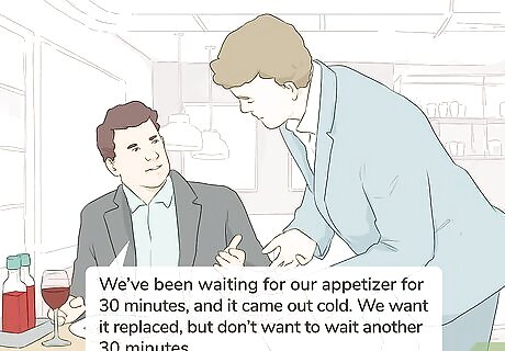 Contact the business’s management team before you turn to Yelp. If you’re still in the establishment, ask to speak to a manager. Otherwise, call to talk to a manager to discuss what happened. Explain why you are unsatisfied and what you want them to do. Give management a chance to fix what’s wrong. You might say, “We’ve been waiting for our appetizer for 30 minutes, and it came out cold. We want it replaced, but don’t want to wait another 30 minutes.” Don’t write a bad review while you’re in the business or organization. Wait until the entire situation has been resolved, then write your review.Tip: Yelp recommends you visit a business or organization multiple times before writing a negative review. It’s possible that 1 bad experience was a fluke.