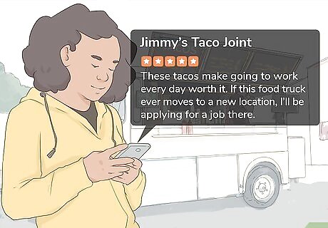 Set a conversational tone so readers feel like you’re a friend. Keep your language simple, friendly, and relatable so it feels like a conversation. Additionally, incorporate your unique perspective so your review feels personalized. Before you publish your review, read over it to make sure it has a smooth flow. For instance, you’d write something like, “These tacos make going to work every day worth it. If this food truck ever moves to a new location, I’ll be applying for a job there,” rather than, “The tacos are authentic and flavorful, reminding me of a dish I enjoyed while in Mexico. I can taste lime juice and Serrano peppers on the meat, as expected for this recipe.”