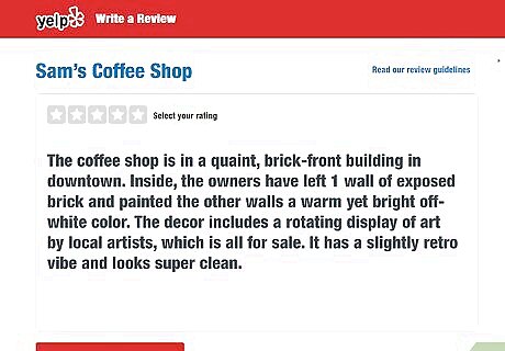 Write at least 2 paragraphs so your review isn’t short. Yelp encourages users to write long reviews because they’re typically more helpful. A short review can’t provide readers with a detailed experience or good tips for getting the most out of a visit. Set a goal of writing at least 2 paragraphs so you know your reviews are comprehensive enough to help community members. It’s okay to write a longer review. In fact, long reviews can be especially helpful to readers.