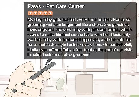Illustrate your experiences with details rather than blanket statements. You might be tempted to write things like “I had a great time” or “this place is awesome.” However, these kind of blanket statements aren’t very helpful to other Yelpers. Instead, give specific examples about what you liked or didn’t like to show people what you experienced. As an example, this review wouldn’t be helpful to readers because it’s vague: “Nadia is a good dog groomer. I will be back.” Instead, you could write something like this: “My dog Toby gets excited every time he sees Nadia, so grooming visits no longer feel like a chore. She genuinely loves dogs and showers Toby with pets and praise, which seems to make him feel comfortable with her. Nadia only washes Toby with products I approved, and she cuts his fur to match the style I ask for every time. On our last visit, Nadia even offered Toby a free treat at the end of our visit. I couldn’t ask for a better groomer!”