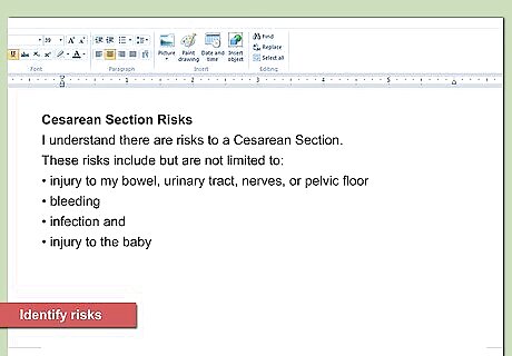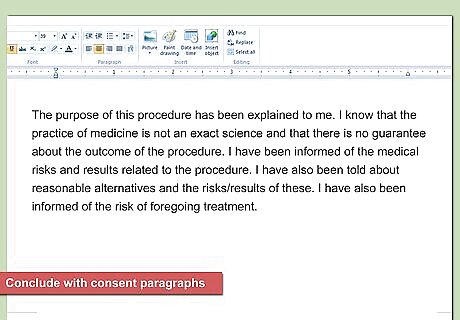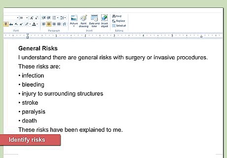 Include information on general risks. Most medical procedures carry some risk. You can create a section for “General Risks.” For example, if you do a form of surgery, then you should apprise your patient of the general risks inherent in all surgeries. You could type, “I understand that there are general risks with all invasive procedures. These risks include...” and then include the risks.