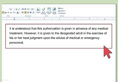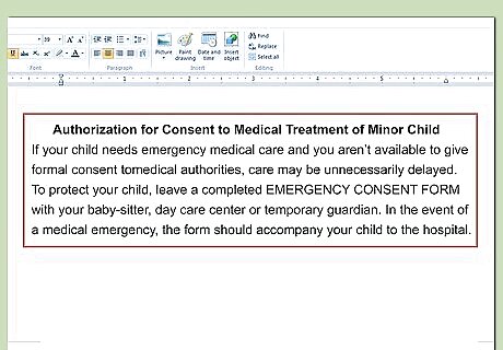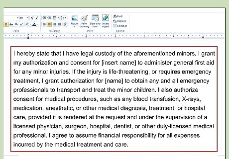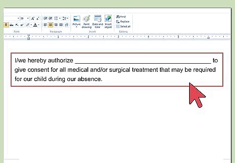 Open with a grant of authority. You should get to the point and immediately identify who you are granting authority to. Type, “We, the undersigned parents, grant permission to [name person] to obtain medical treatment for the following children….”