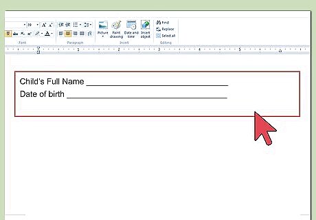 Identify your children. You should list the children to whom the medical consent form will apply. Type their legal name, home address, and date of birth. Line them up in a column so that it is easier to read.