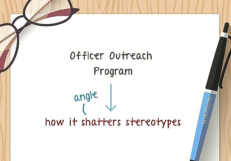 Find an angle. Why is this article unique to you? What is your voice? These questions will help you to make your news article unique and something that only you could write. Even if you are covering a popular story or topic that others are writing about, look for an angle that will make this one yours. Do you have a personal experience that relates to your topic? Maybe you know someone who is an expert that you can interview.