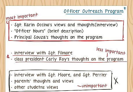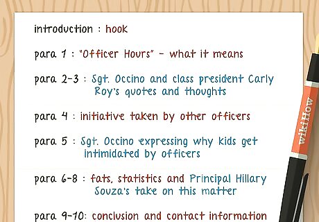 Create an article outline. Your outline, and subsequently your article, should be structured like an inverted triangle. The inverted triangle allows you to build your story so that the most important information is at the top. If you’ve ever heard the term “burying the lead”, that is in reference to the structure of your article. The “lead” is the first sentence of the article – the one you “lead” with. Not "burying the lead" simply means that you should not make your readers read several paragraphs before they get to the point of your article. Whatever forum you’re writing for, be it print or for the web, a lot of readers don’t make it to the end of the article. When writing a news article, you should focus on giving your readers what they want as soon as possible. Write above the fold. The fold comes from newspapers where there’s a crease because the page gets folded in half. If you look at a newspaper all the top stories are placed above the fold. The same goes for writing online. The virtual fold is the bottom of your screen before you have to scroll down. Put the best information at the top to engage your readers and encourage them to keep reading.
