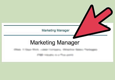 Create a heading that reflects the position you are seeking. The first and most obvious place to tailor your resume is right at the top, with your heading and summary statement. Start by including the name of the potential job in a heading immediately underneath your contact information. Enlarge the font slightly, and put the heading in bold to separate it from the rest of the information. If you have never held a position exactly like this one, place the words “Qualifications for” just above the heading. This explains to recruiters that although you do not hold an identical job and haven't in the past, you intend to show that you are qualified.