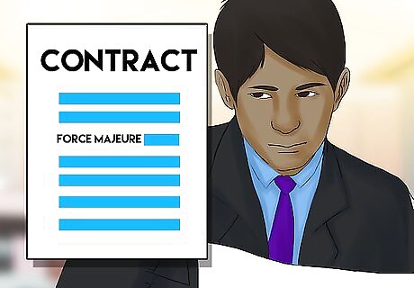 Provide exceptions where failures will be excused. In some situations, typically those that are unanticipated and not within the control of the party, a failure to perform is understandable and shouldn't count against that party. This clause frequently is referred to as a "force majeure" clause – French for "superior force." If certain unforeseeable and generally uncontrollable events, such as a hurricane or a forest fire, occur, both parties are relieved of their duties under the contract. Essentially, everything between them goes back to the way it was before the agreement.
