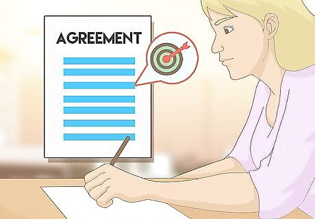 Read the agreement carefully. Once you've completed your draft, both you and the other party should read it and make sure you both understand the terms in the same way. If any misunderstandings or disagreements arise as to the wording of the document, you can resolve those issues before you sign the document. Discuss any awkward or unclear clauses and make adjustments to the agreement as necessary before you sign it.