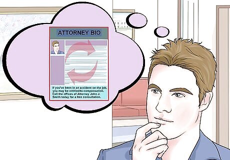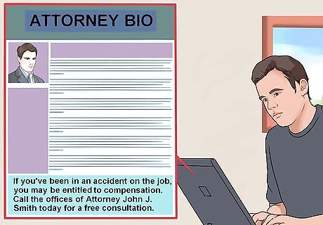 Close with a call to action. At the end of the bio, remind readers that the attorney is here for them. End with a statement like the following: “If you’ve been in an accident on the job, you may be entitled to compensation. Call the Law Offices of Attorney John J. Smith today for a free consultation.”