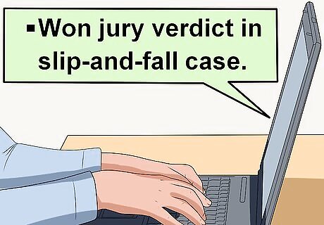 Write in a personable tone. Many people are intimidated by attorneys. Proper tone can convey that the attorney is approachable and easy to work with. Use of technical jargon may impress fellow attorneys, but it can alienate the general public. Instead of using legal terms like "secured additur at trial," consider saying, "won increase in total compensation for client."