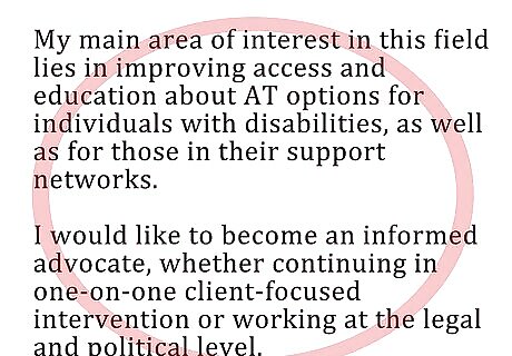 Don't tell the admissions committee how amazing you are. Avoid empty phrases like "I'm talented," "I'm very intelligent," "I'm a great writer/engineer/artist," or "I had the highest GPA in my department as an undergrad." Instead, show them your worth through your professional Statement of Purpose and application portfolio and let them decide if you are amazing enough to attend their institution. Should you attempt to explain how amazing you are, make sure that you justify it. Yet, you must remain humble. For example: "I believe that I have the confidence in myself to strive for the furthest goal."