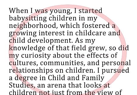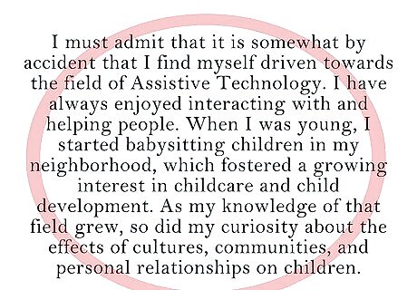 Use short anecdotes to highlight your strengths. After committee members have read a few dozen, all statements start to look alike; some specific and interesting details can help a candidate stand out. Of course, it helps if these anecdotes are related to the broad point you're making in your statement.