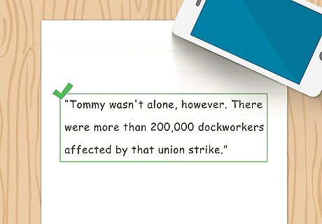 Relate your hook to a larger topic. The next part of your introduction explains to your reader how that hook connects to the rest of your essay. Start with a broader, more general scope to explain your hook's relevance. Use an appropriate transitional word or phrase, such as "however" or "similarly," to move from your specific anecdote back out to a broader scope. For example, if you related a story about one individual, but your essay isn't about them, you can relate the hook back to the larger topic with a sentence like "Tommy wasn't alone, however. There were more than 200,000 dockworkers affected by that union strike."
