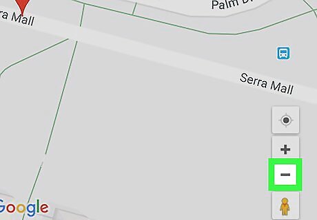 Click - to zoom back out. It’s below the button you used to zoom in. If you have a mouse with a scroll wheel, scroll back down to zoom out. If you used two fingers on a touchpad, drag them downward to zoom out.
