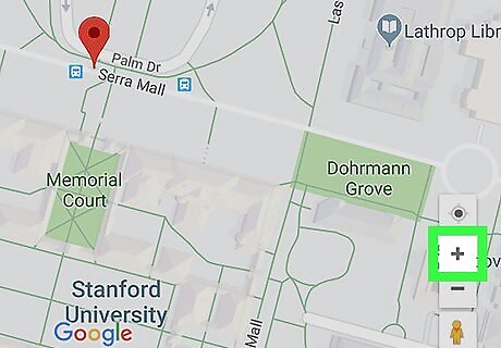 Click +. It’s a button near the bottom-right corner of the screen. This zooms in. Keep clicking it until you’re zoomed in as far as you need. If you’re using a mouse with a scroll wheel, you can scroll it upward to zoom in. If your computer has a trackpad, you may be able to touch it with two fingers and then drag them upward to zoom.