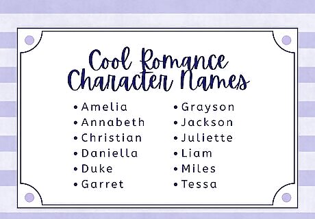 When choosing a romance character’s name, reflect on their background, personality, and the elements of your world. If the male lead is a rich CEO, for example, something powerful, like Duke or Miles, would work well. For a female lead, try something soft and feminine, such as Amelia or Juliette. Here are more ideas: Amelia Anastasia Annabeth Christian Daniella Dean Duke Garret Grayson Jackson John Juliette Liam Miles Tessa