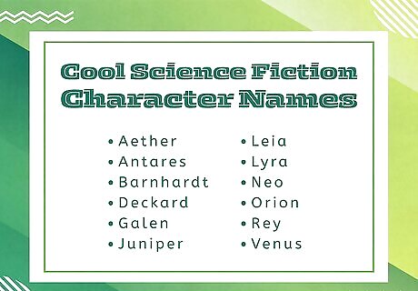 Incorporate intergalactic elements, like the planets, moons, sun, and stars, into your character’s name to stay on theme. Here are some cool ideas for any science fiction character: Aether Alia Antares Astra Barnhardt Deckard Galen Juniper Leia Lyra Neo Orion Rey Venus Xena