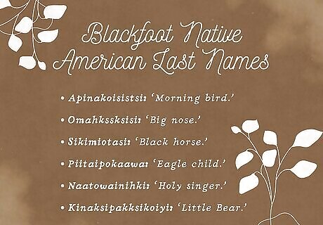 The Blackfoot Confederacy is a collection of indigenous groups who historically lived in the Great Plains of North America (this includes present-day areas like Montana, Alberta, and Saskatchewan). Traditionally, Blackfeet people did not use last names. Instead, they’d use a single, unique personal name that was chosen based on a person’s achievements, life path, or relationship with the spiritual world. Here are some examples of those original Blackfoot names: Apinakoisistsi: “Morning bird.” Omahkssksisi: “Big nose.” Sikimiotasi: “Black horse.” Piitaipokaawa: “Eagle child.” Naatowainihki: “Holy singer.” Kinaksipakksikoiyi: “Little Bear.”