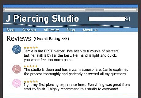 Go to a reputable and experienced piercer. If you’re ready to get a tongue piercing, Stephanie Anders, the owner of Royal Heritage Tattoo and Piercing, highly suggests that you “do your research and find a reputable studio” to go to. Ensure the piercers are certified and follow proper piercing and cleanliness protocols. Then, choose a piercer who has experience doing tongue piercings and provides quality work. For instance, look through the piercer’s portfolio and read through their reviews to ensure they pierce tongues well.