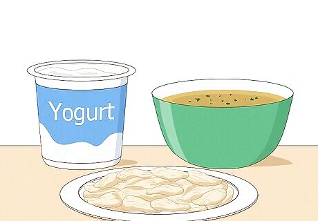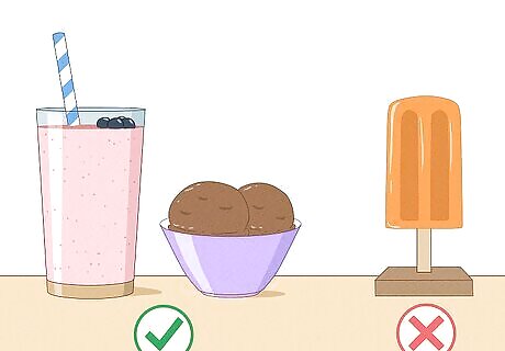 Eat soft foods until the swelling goes down. In the first few days of getting your piercing, Anders recommends eating soft foods like soups, smoothies, yogurt, shredded chicken, tender fruits, and cooked veggies. Since your tongue will probably be pretty swollen, this helps reduce irritation and any discomfort as you eat. Just chew slowly and carefully to prevent yourself from biting or bumping your piercing.