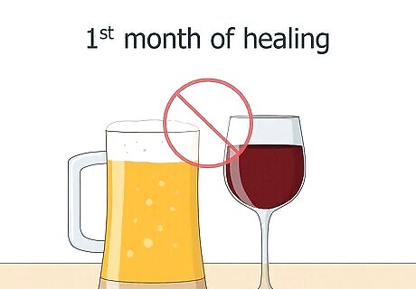 Avoid drinking alcohol for the first month of healing. Blue advises against drinking alcohol during the first month or so of healing. She says, “Any alcoholic beverage, regardless of [whether] it’s wine, vodka, beer, and such, will promote more swelling.” Once the initial period of swelling goes down, it’s typically okay to consume alcohol again. If you smoke, Blue says to try to avoid smoking as much as you can. Smoking can prolong healing, and the sucking motion can lead to more swelling and irritation.