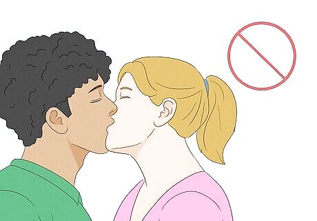 Minimize kissing and other intimate contact. Kissing, oral sex, and other intimate contact can introduce bacteria to your piercing as it heals, which can prolong the healing time or even lead to an infection. These acts can also move and irritate your piercing, affecting its healing. Also, avoid sharing cups, utensils, and plates with anyone else, as this can also put your piercing in contact with potentially harmful bacteria.