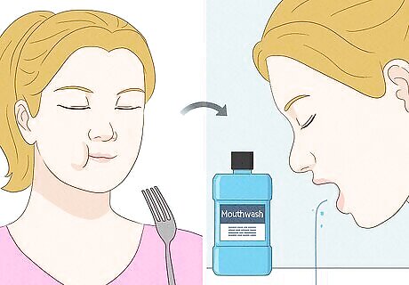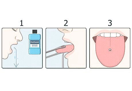 Rinse your mouth with water or mouthwash after each meal. To keep your piercing clean and to prevent infection while it heals, make sure to rinse out your mouth after you eat or drink something other than water. Some piercers recommend just rinsing your mouth with water, while others may advise using an alcohol-free mouthwash—just follow the instructions your piercer gives you.