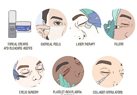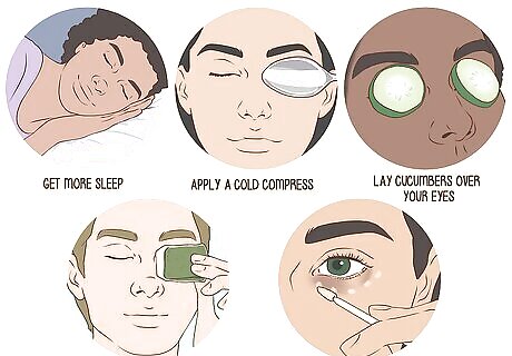 At-home remedies Try getting rid of dark circles at home with one or more of these doctor-approved home remedies and treatments: Get more sleep. One of the best ways to reduce dark circles is to get at least 7 hours of good sleep at night. Apply a cold compress. Place cold spoons over your eyes to help decrease puffiness and reduce the appearance of dark circles. Lay cucumbers over your eyes. The vitamin C in cucumbers can help reduce eye puffiness. Place cold tea bags on your eyes. A tea bag compress can help improve circulation and minimize discoloration. Use makeup to your advantage. Under-eye concealer and foundation can help conceal bags under your eyes. EXPERT TIP Christin Birckhead Christin Birckhead Makeup Artist Christin Birckhead is a Makeup Artist and the Founder of Conceptual Beauty, a beauty service based in Washington, DC specializing in wedding services such as engagements and bridal parties along with fashion shows and executive headshots. She has over 20 years of makeup and beauty consulting experience. She is also the lead makeup artist for Ascender Communications and freelances with the local NBC news team in the DC metro area. Her clients include Nancy Pelosi, Nancy Cartwright, Armin Van Buuren, Hugh Jackman, Vashawn Mitchell, Richard Smallwood, Benjamin T. Jealous, Colin Powell, Wanda Durant, and Former Liberian President Ellen Johnson Sirleaf. Christin Birckhead Christin Birckhead Makeup Artist Use a concealer with a peach or orange undertone to conceal under-eye circles. A color-correcting concealer is the best way to hide dark under-eye circles. Opt for a concealer that has an orange undertone.