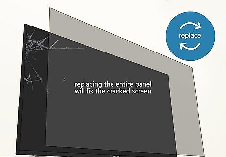 Use a DIY screen repair kit to replace the screen yourself. You can find numerous DIY TV screen repair kits online that will help you safely remove your TV screen if you want to replace the whole thing. However, you will also have to buy a new screen that is compatible with your TV, and these can be quite expensive. It might be a better bet to have a pro replace the screen or buy a new TV.