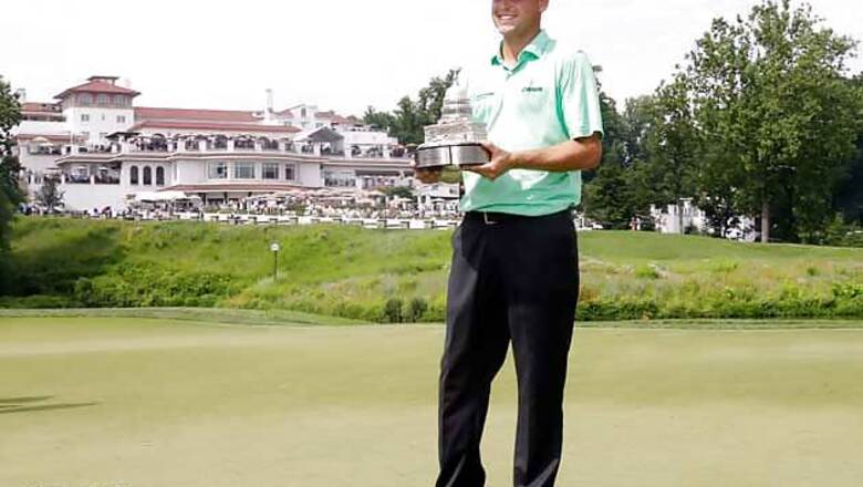 The 31-year-old was handed the trophy from tournament host Tiger Woods, who was unable to take part in the event because of an elbow injury that will keep the world number one out of action until the British Open.