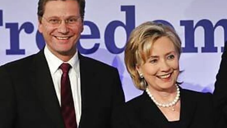 Clinton accepted the foundation's inaugural Freedom's Challenge prize on behalf of the American people, while German Foreign Minister Guido Westerwelle received the recognition in the name of the German people.