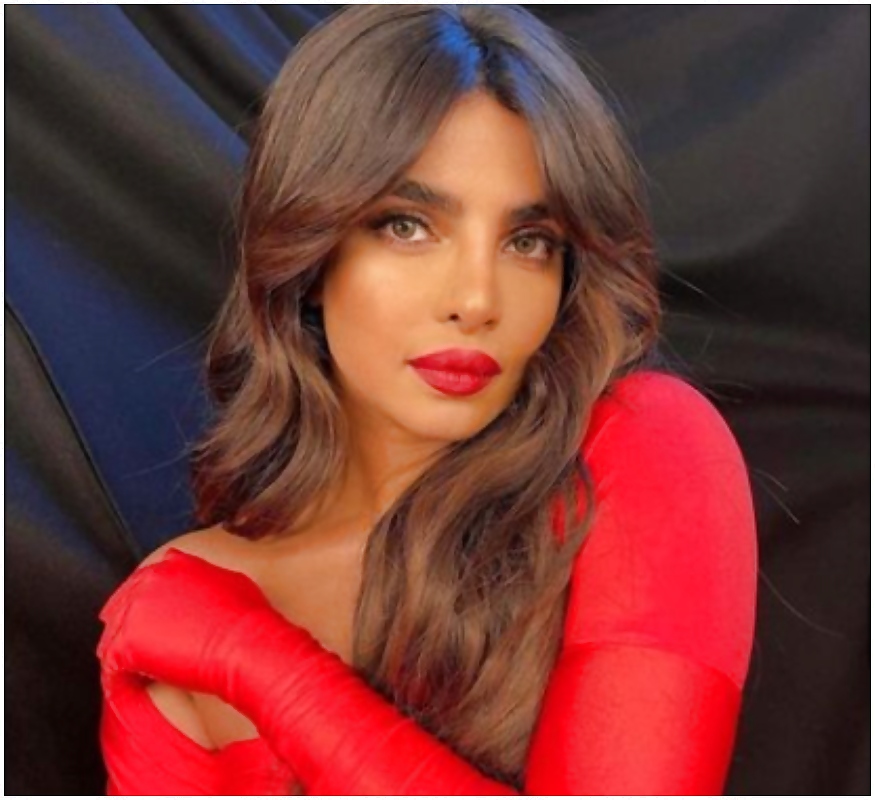 Priyanka Chopra shared a bunch of pictures wearing a red dress to mark the launch of her husband Nick Jonas' new single 'Spaceman'.